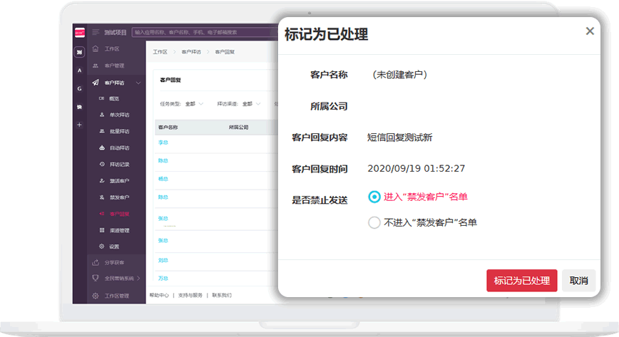 退订客户,可添加到禁发客户,不再发送拜访信息