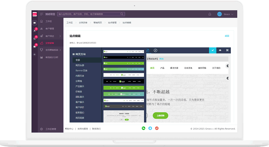 通过拖拽方块方式,即可创建营销站点,宣传产品