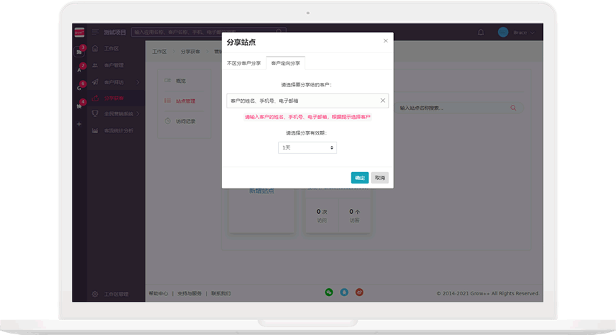 可定向分享站点给客户,在客户了解产品的同时,让你更了解客户的关注。