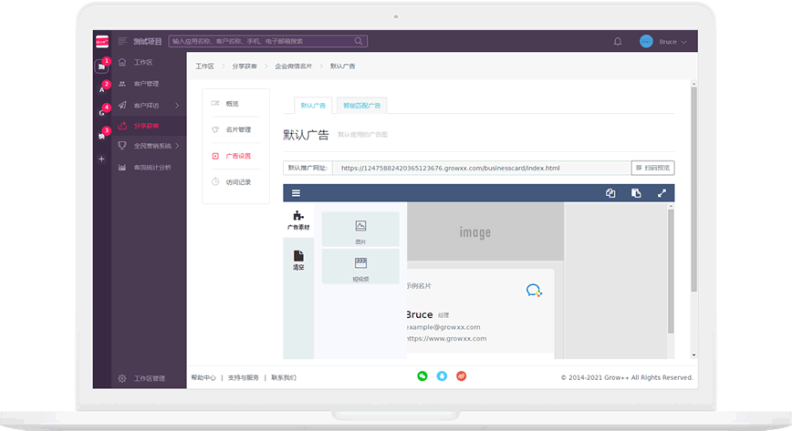 可为名片设置广告内容,在《客户拜访》系统中使用。
