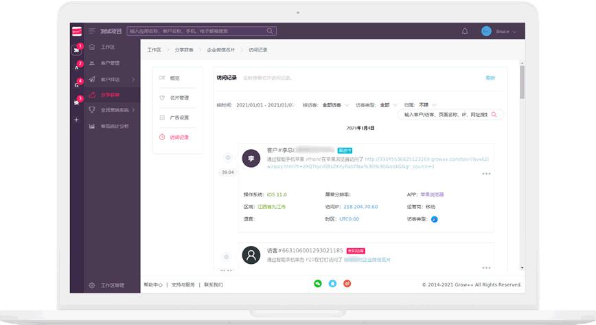 查看详细的客户访问记录,分析客户兴趣关注。