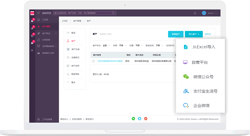 可以通过Excel导入客户,也可以直接导入自营平台、微信公众号、企业微信、支付宝生活号等平台客户