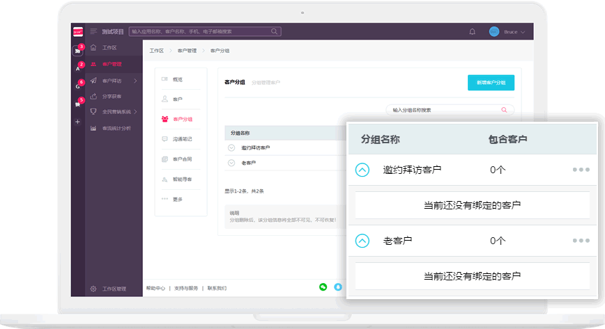 通过客户分组,对客户进行分类管理,便于跟进查看