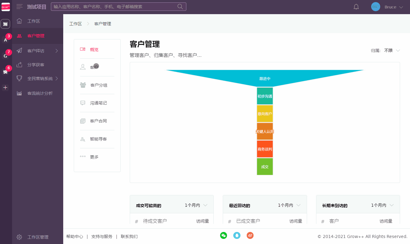 工作区代表一个运营的项目,承载项目的业绩增长功能和运营数据