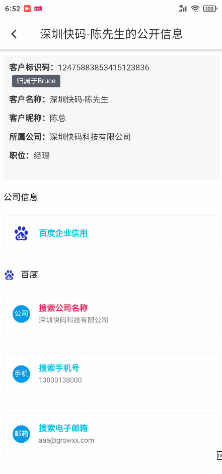 手机端APP,可在客户详情随时查看客户公开信息