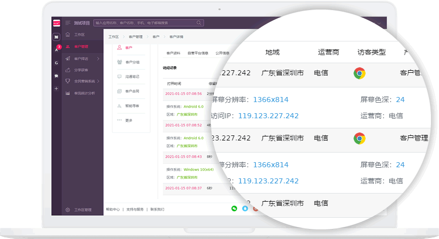 客户详情中可查看多端访问的访客