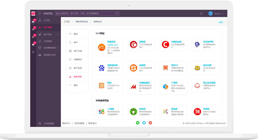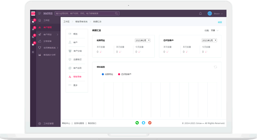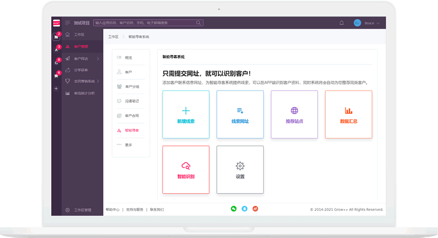 工作区代表一个运营的项目,承载项目的业绩增长功能和运营数据